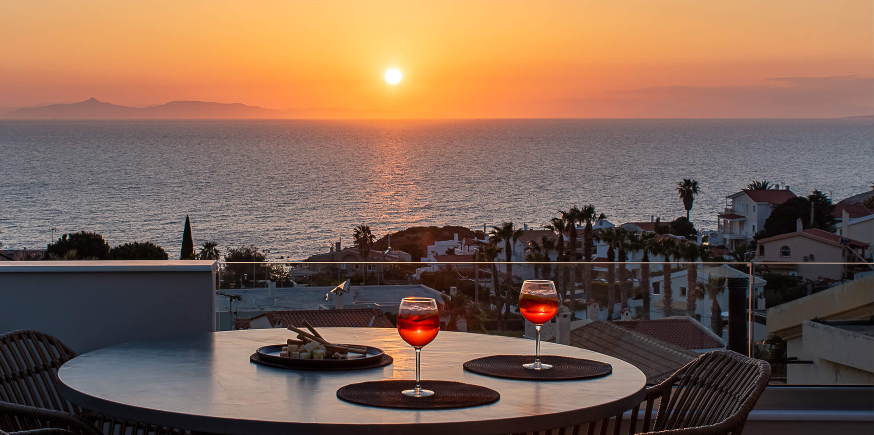 The summer complex is located close to the historic Cape Sounio, at the southernmost tip of the Attica peninsula. Only a 45 minute-drive from the airport and approximately 1 hour from downtown Athens. The Villa was built on the north part of the complex (approximately 300m from the beach), thus providing the opportunity to every visitor to enjoy amazing plate views of the Saronikos Sea and the nearby islands of Poros and Aegina.